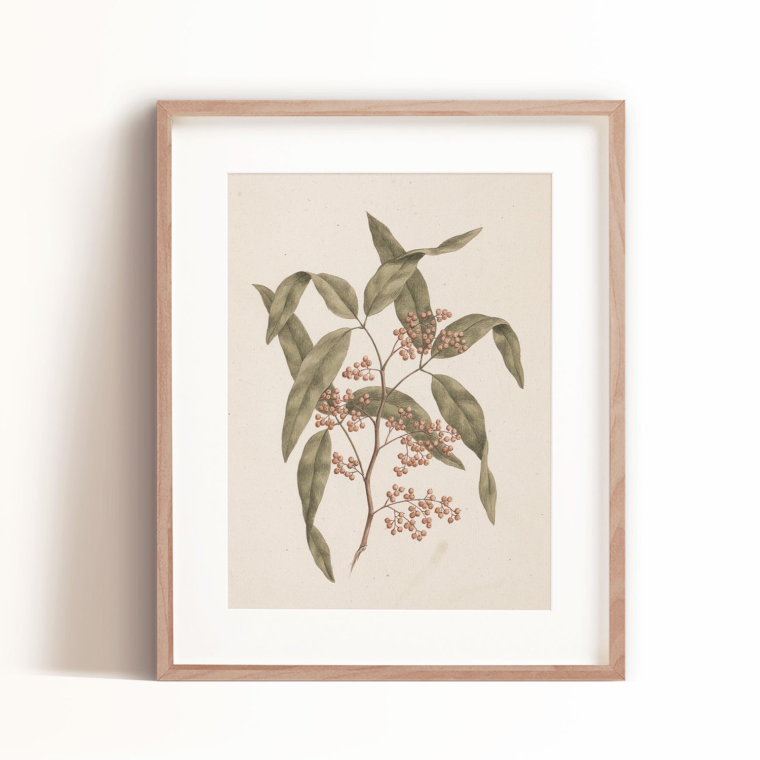 This luxe art print features a muted color palette, delicate leaves and branches adorned with berries. A beautiful vintage piece, this print will add a lovely touch to any room.