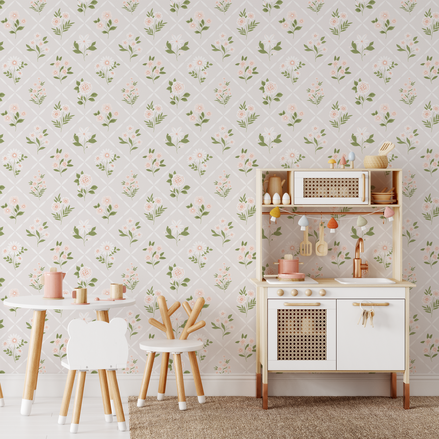 This Bouquets wallpaper is from our Artist Collection and was designed by Paper Raven Co. Unique artistry and beautiful motifs makes this floral piece a great addition to any space.