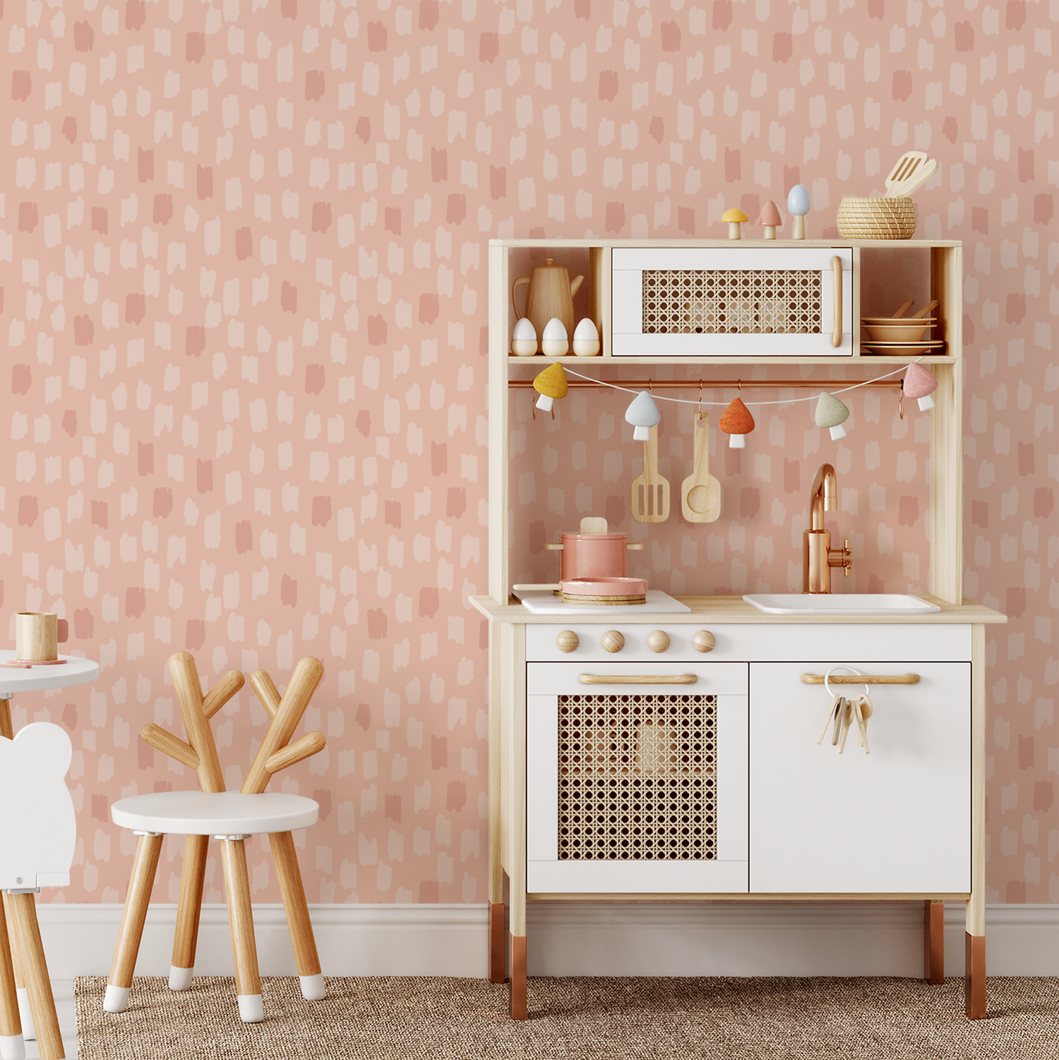 This Confetti wallpaper is from our Artist Collection and was designed by Sabrina Tortora. Different variations of pink and nude gives a modern feel to this unique design.