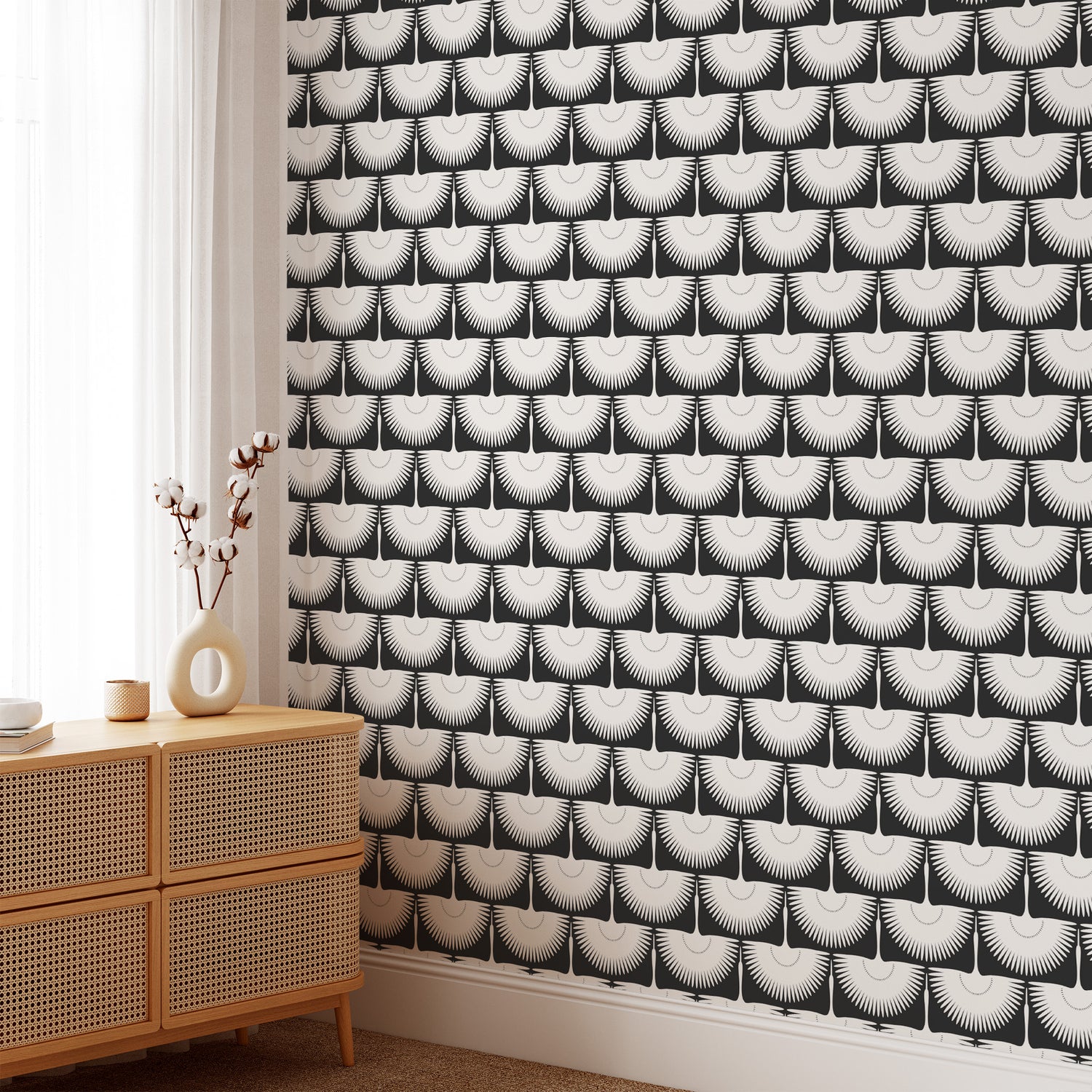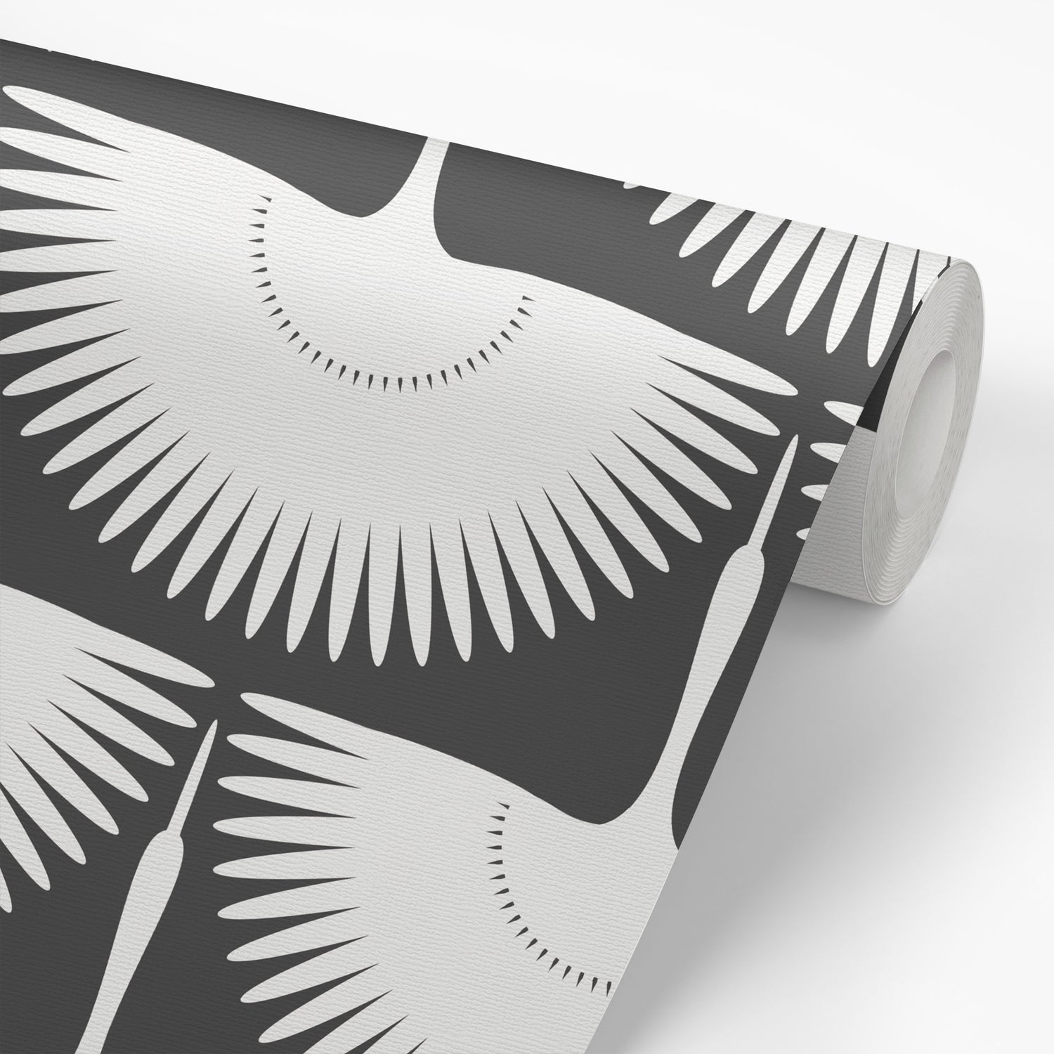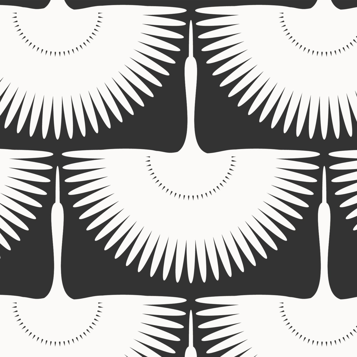 This Crane Silhouette Wallpaper in Black is from our Art Deco Collection and was designed by Frost Design Co. Inspired by art from that period, these cranes were designed in a geometric, symmetrical way to reflect art in the 1920's. We love the stark contrast of the black background and off-white cranes.