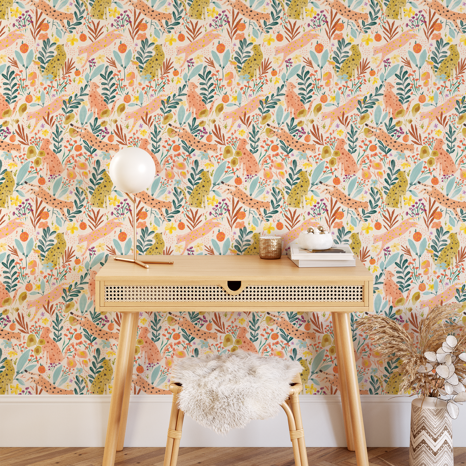 This Daydream wallpaper is from our Artist Collection and was designed by Jill Labieniec. A gorgeous array of vibrant hand-painted animals that create such a fun vibe. This design would be dreamy in a kids nursery or playroom.