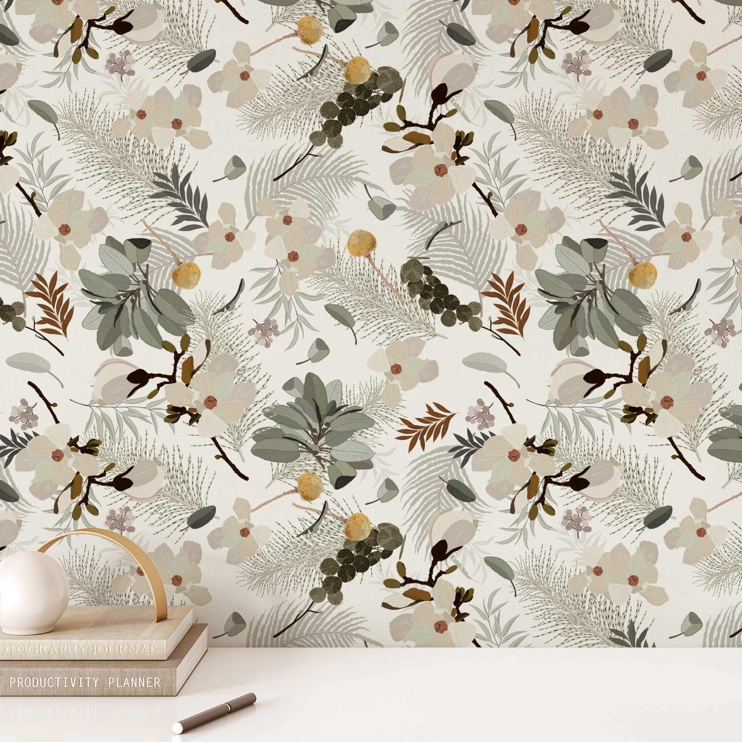 Enhance your space with the stunning Ella Tropical Florals Wallpaper - Warm . This elegant design features vibrant florals and botanicals, adding a touch of nature to any room. Elevate your home decor with this beautiful and unique wallpaper.