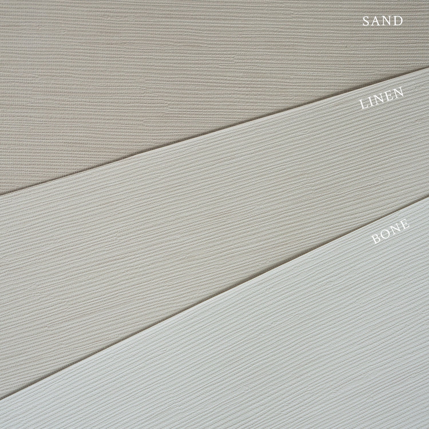 Our long-anticipated faux grasscloth is here! Enjoy a collection of 26 breathtaking colors in our Faux Grasscloth Wallpaper Solids Collection. Bring instant luxury, texture, and dimension to your walls with the convenience of a wipeable, durable material. This listing includes the following shades of light neutrals: sand, linen, and bone.
