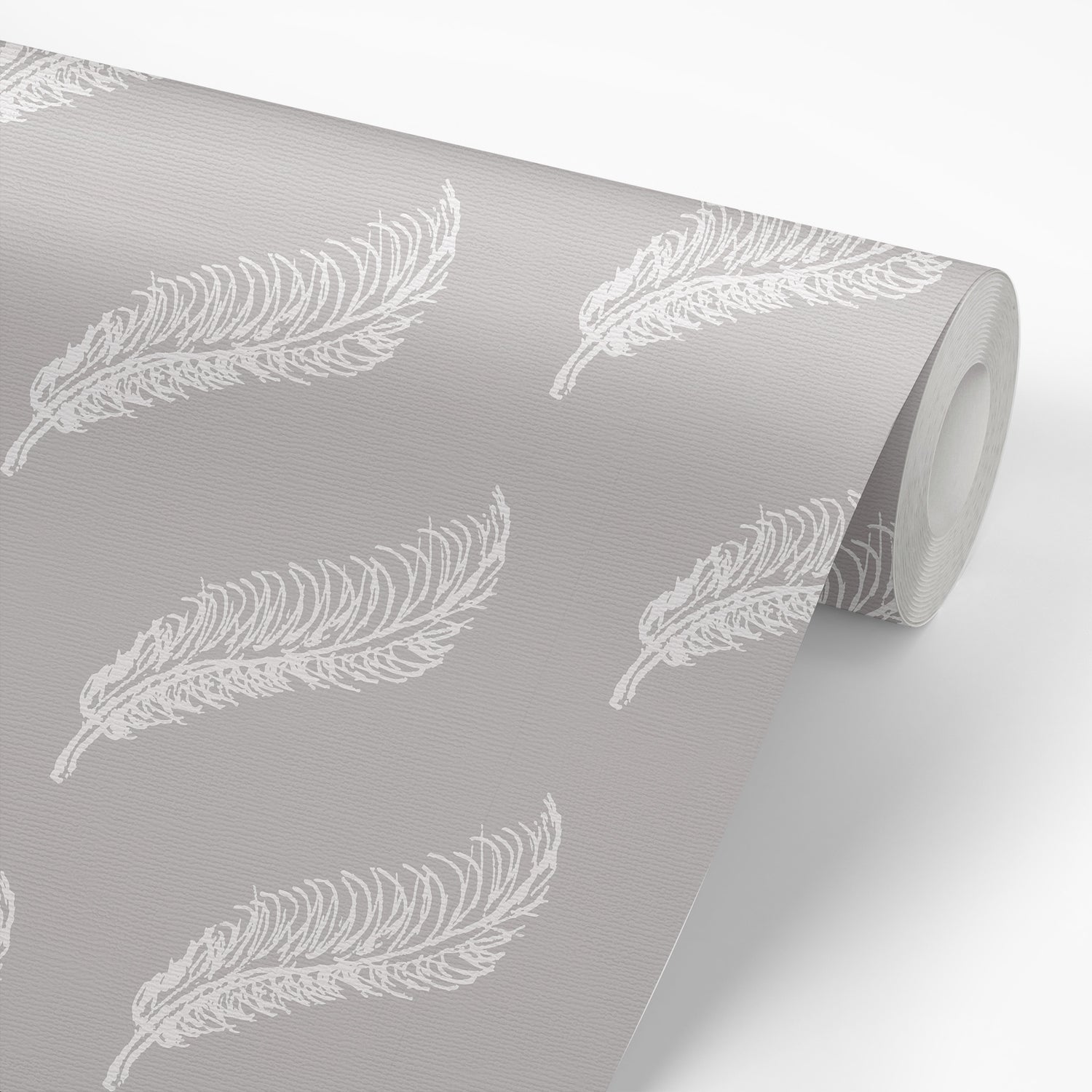 This Feathers wallpaper is from our Artist Collection and was designed by Rose Lindo. These feathers done in gray can bring a fun and unique energy to your space!