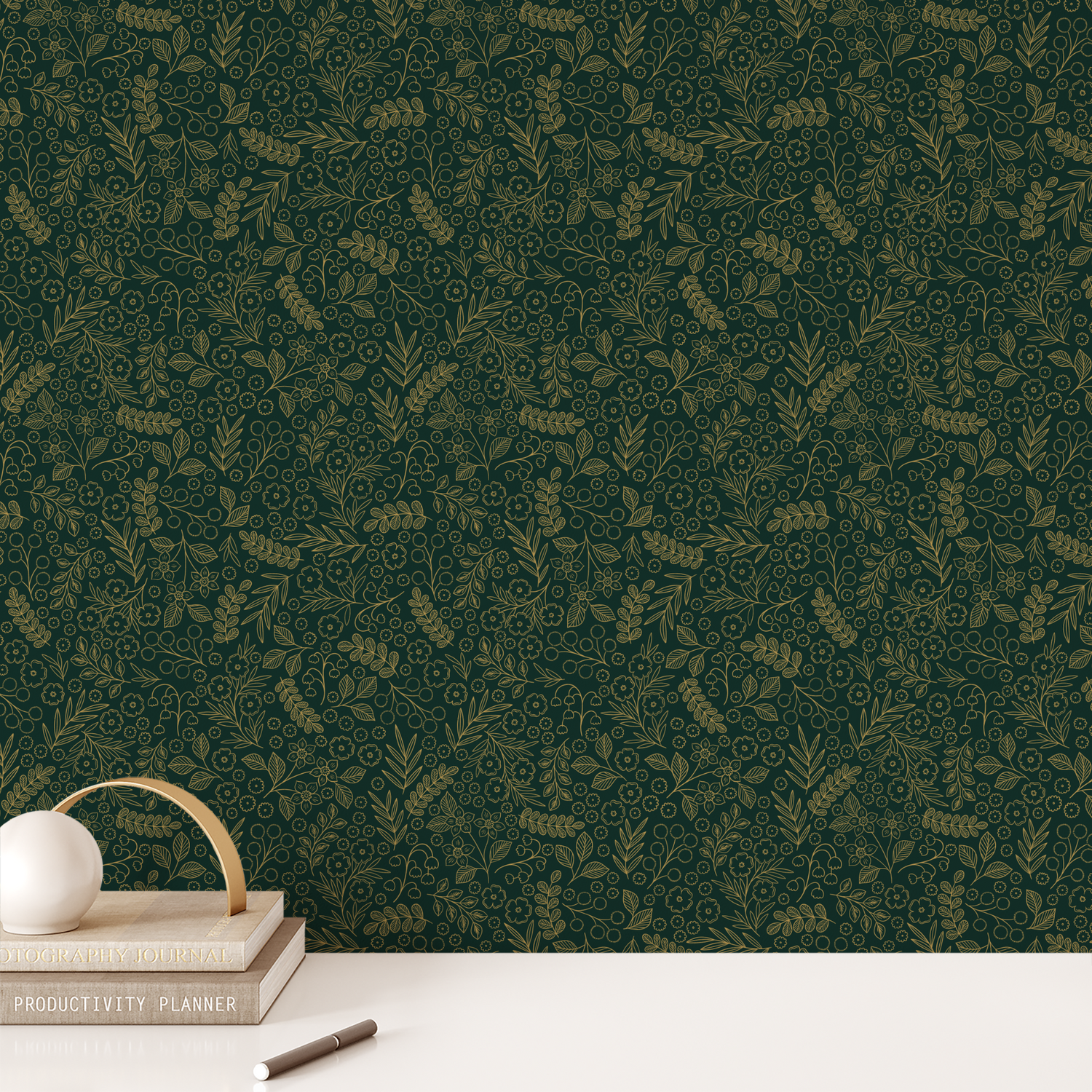 This Fields wallpaper is from our Artist Collection and was designed by Paper Raven Co. Beautifully designed this soothing foliage pattern done in pine gold is a classic.