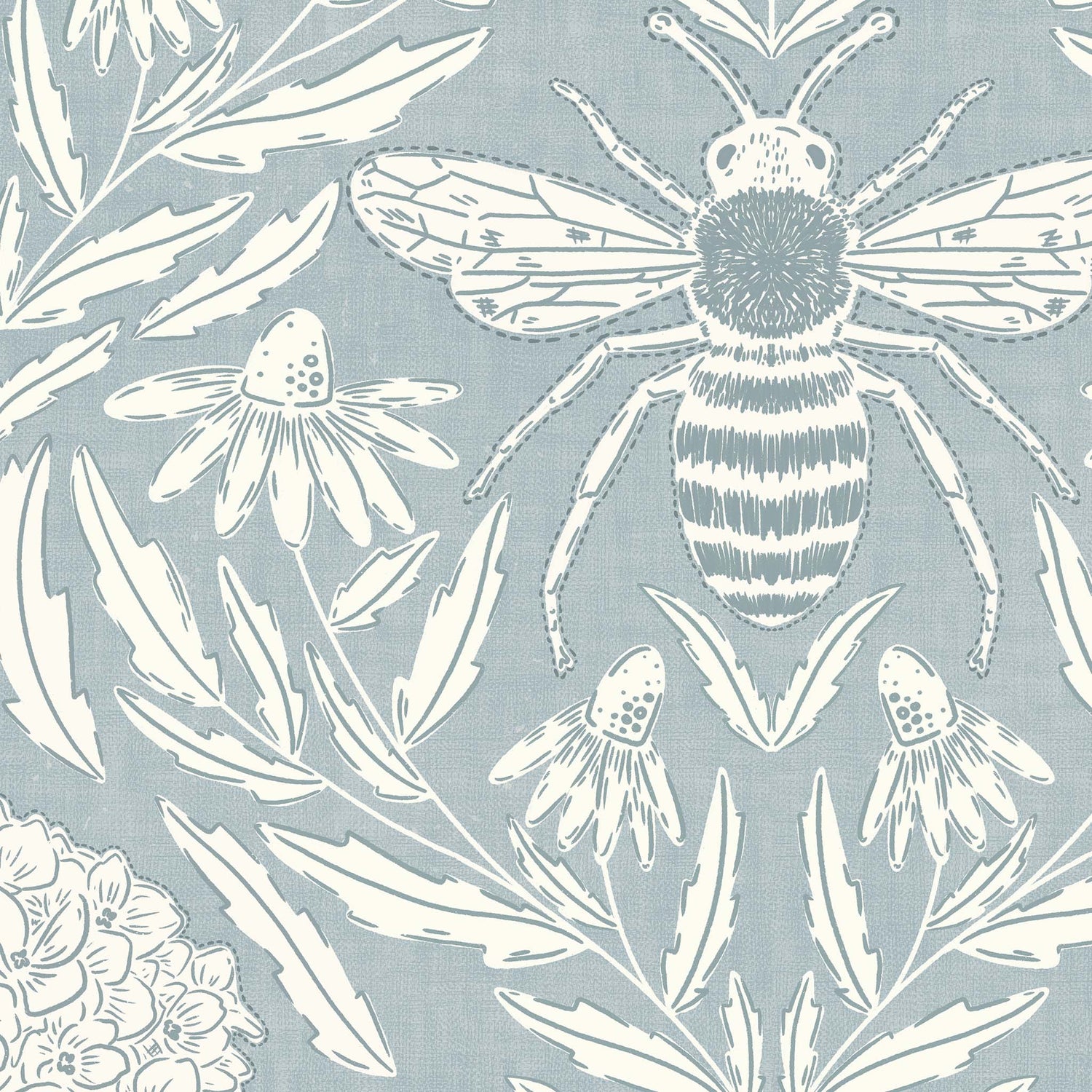 Honey Bee Meadow Wallpaper - Cloudy Sky Blue
