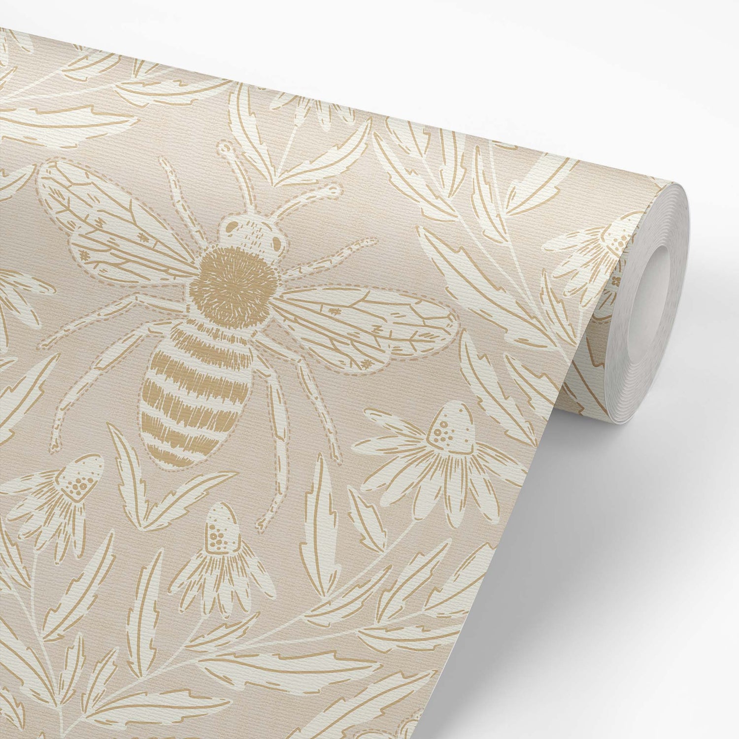 Add a touch of charm to your space with our Honey Bee Meadow Wallpaper in Sand. Featuring a classic design of bees and florals, this wallpaper will bring a sense of luxury to any room. Let your walls come to life with this exclusive and tasteful addition. View the entire Leah Nicole Designs x Ayara collection here.