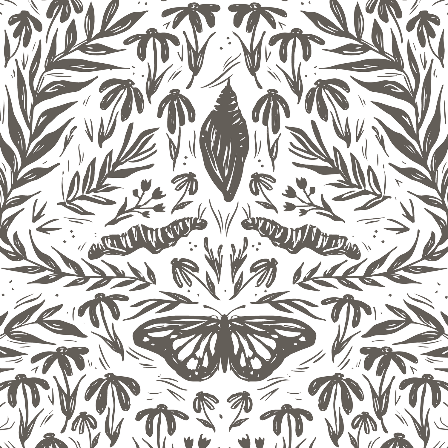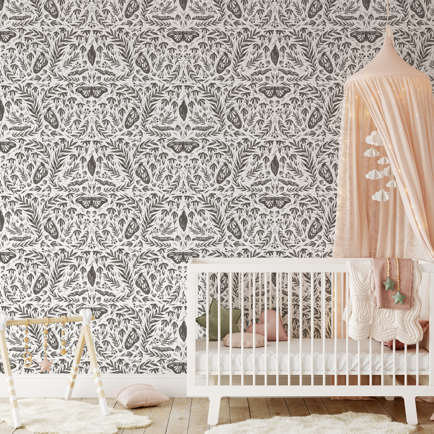 This Metamorphosis wallpaper is from our Artist Collection and was designed by Rose Lindo. Bring the outdoors in with this unique design featuring insects and foliage.