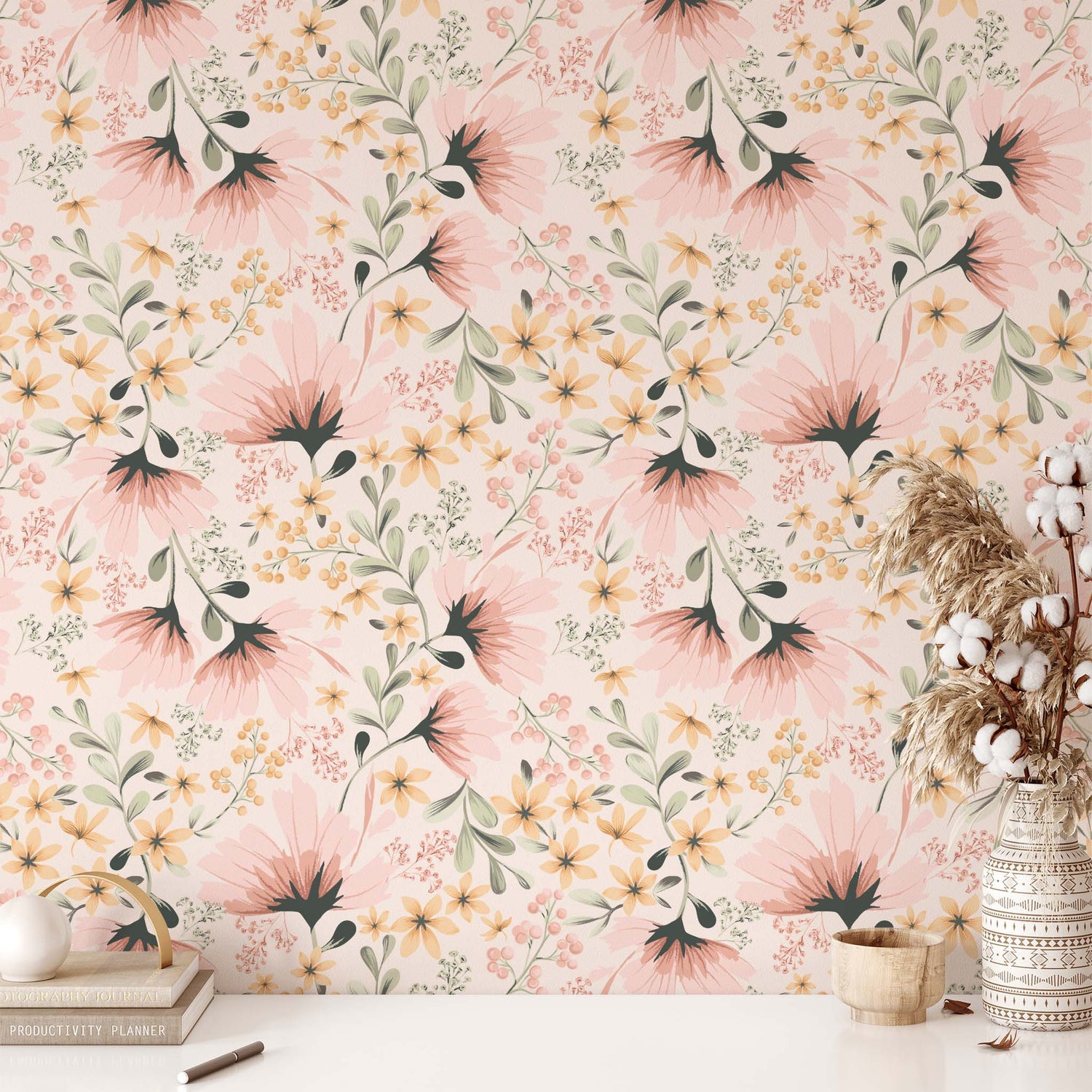 Transform your home with this elegant Pastel Garden Wallpaper in in Cream. Bursting with delicate pinks, sunny yellows, and dusty blues, this watercolor floral wallpaper is sure to captivate your senses and brighten up any room. View the entire Mercedes Cortes x Ayara collection here.