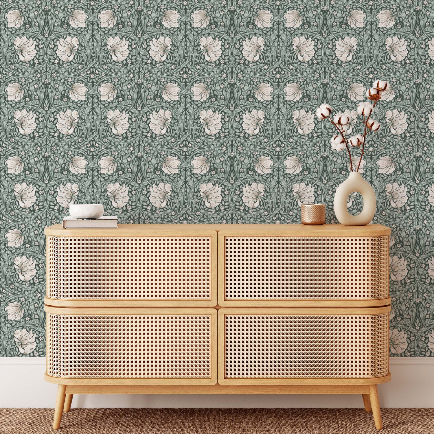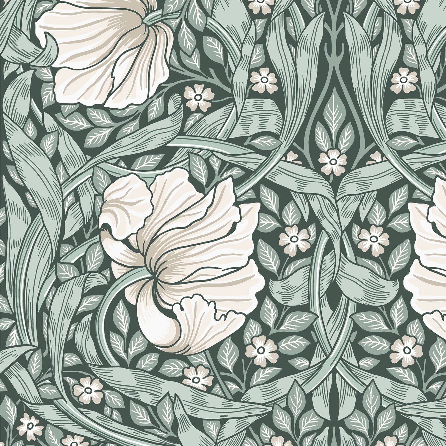 This Pimpernel Wallpaper features shades of green, white, and cream. You'll love this traditional design from our Heirloom collection with its classic design elements and elegant florals.