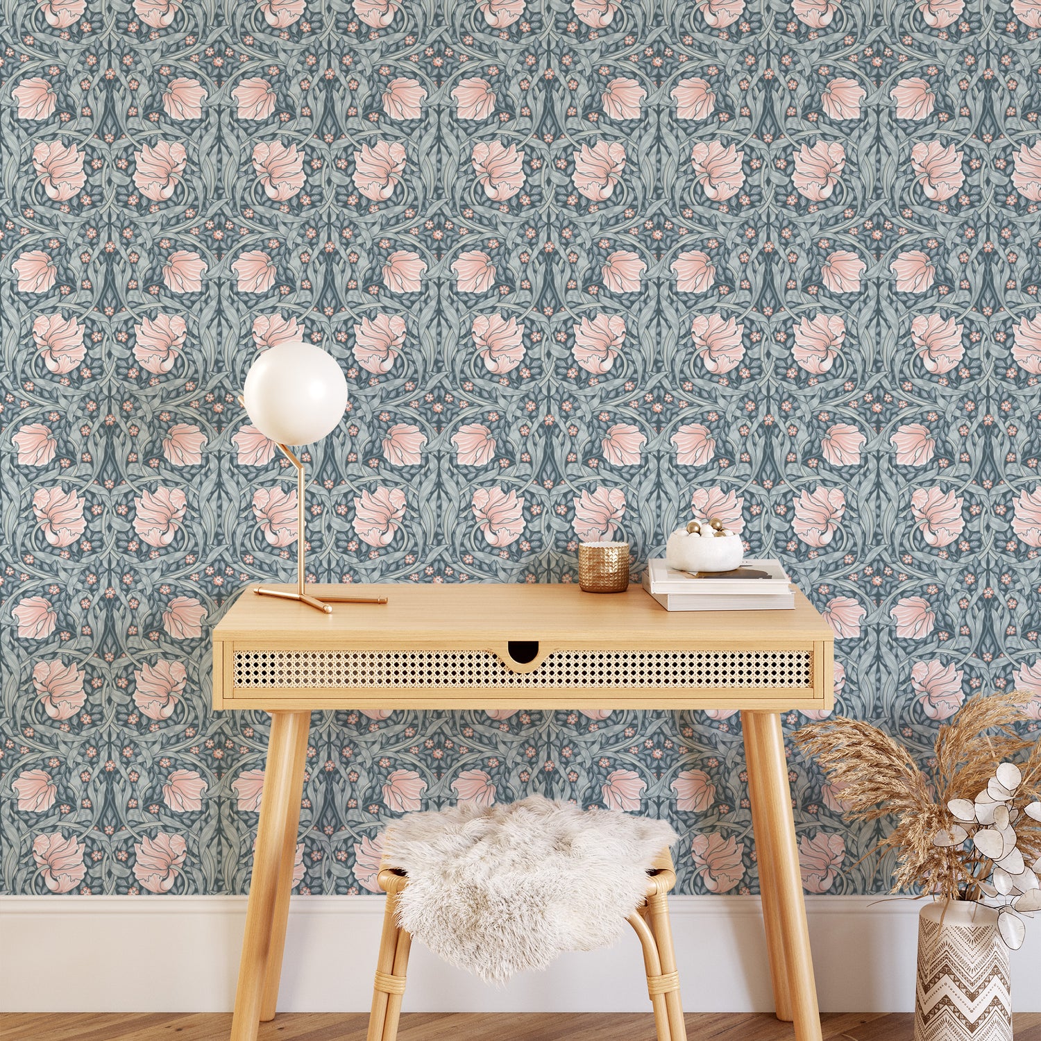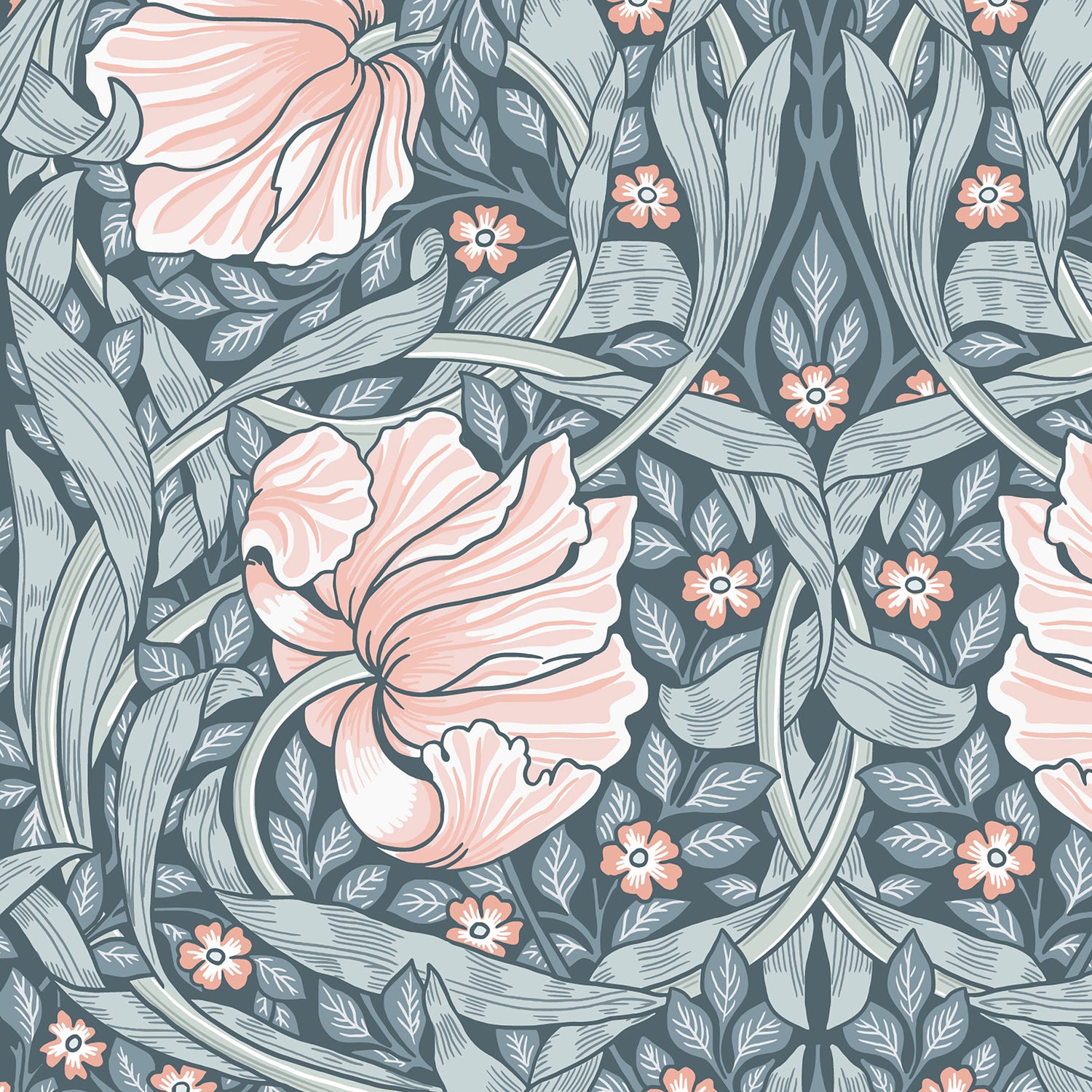 This Pimpernel Wallpaper designed in pink sorbet features shades of pink, blue-green and soft gray. You'll love this traditional design from our Heirloom collection with its classic design elements and elegant florals.