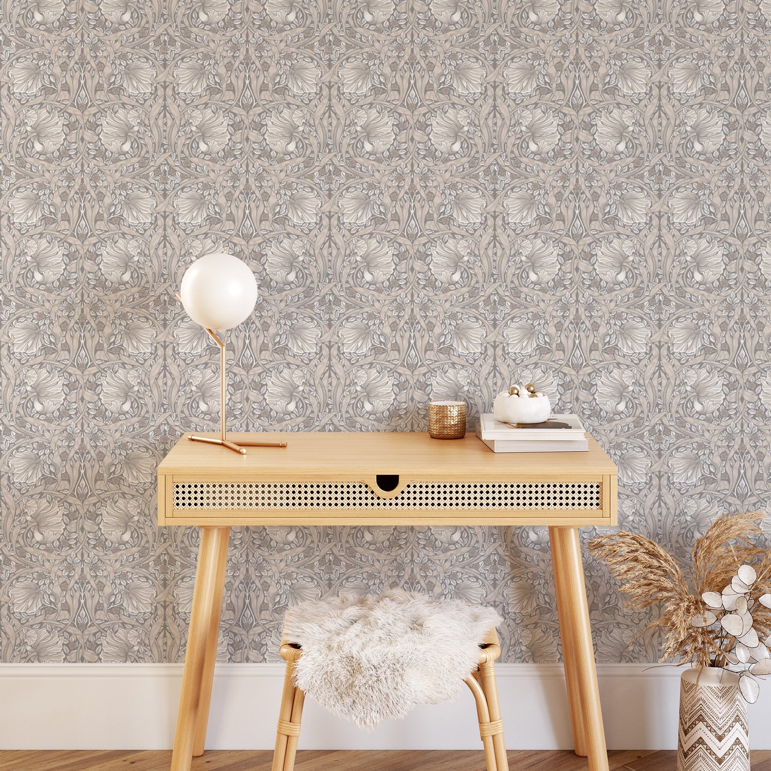 This Pimpernel Wallpaper designed in taupe is from our Heirloom collection. With traditional elements and elegant florals, you'll love this classic design!