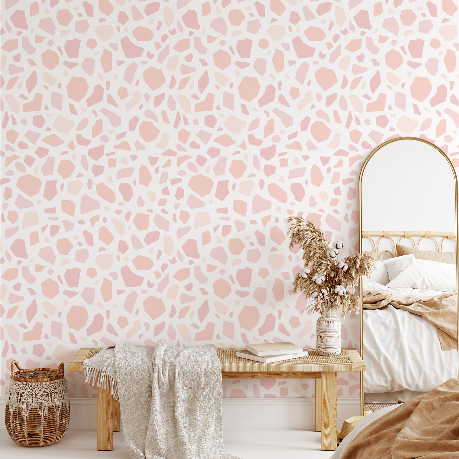 This Terrazzo wallpaper is from our Artist Collection and was designed by Frost Design Co. With its abstract artistry and pink colorway, this print is fun in every way.