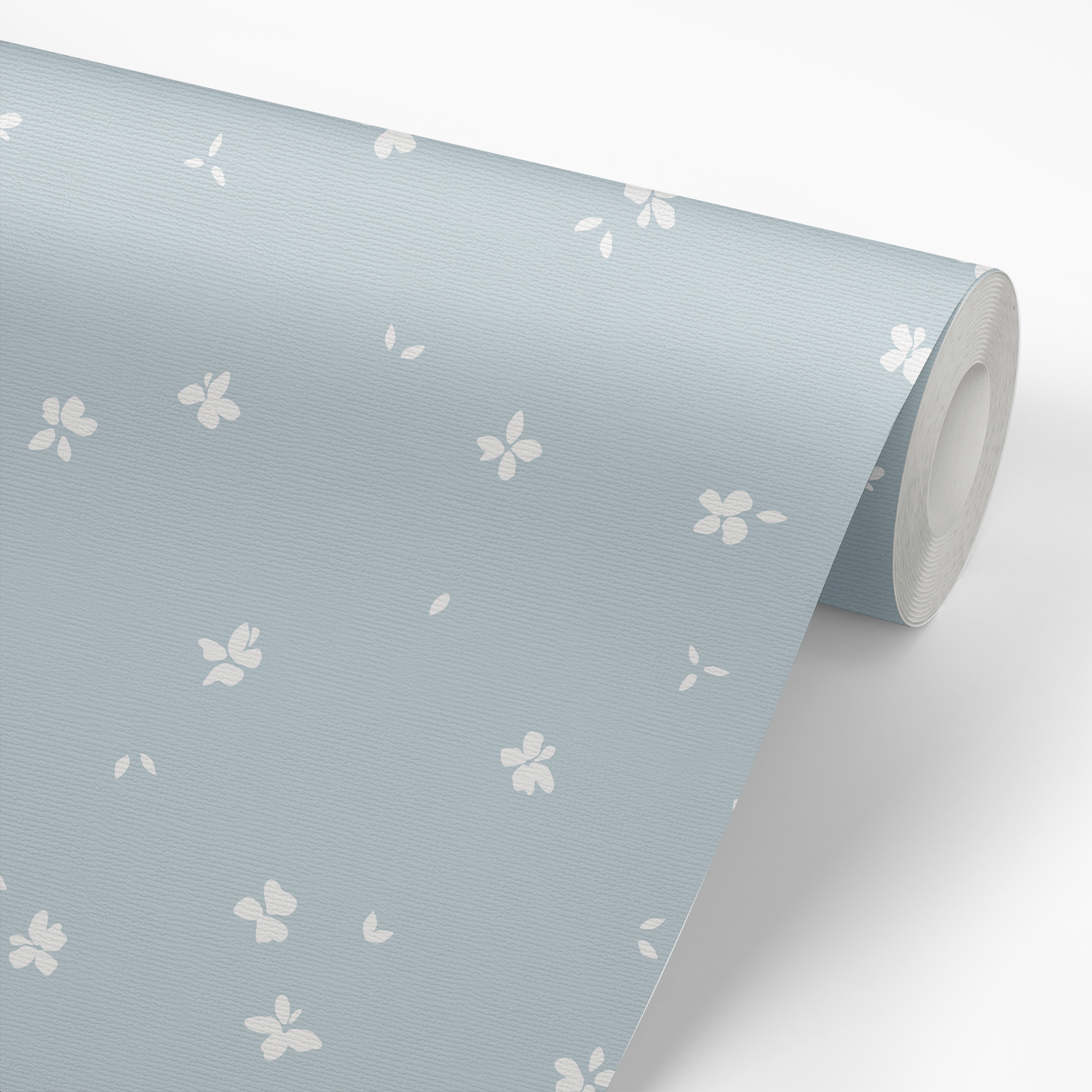 This Tiny Floral wallpaper is from our Artist Collection and was designed by McKenzie Nielson. Gorgeous floral pattern with a classic touch of elegance done in dusty blue.
