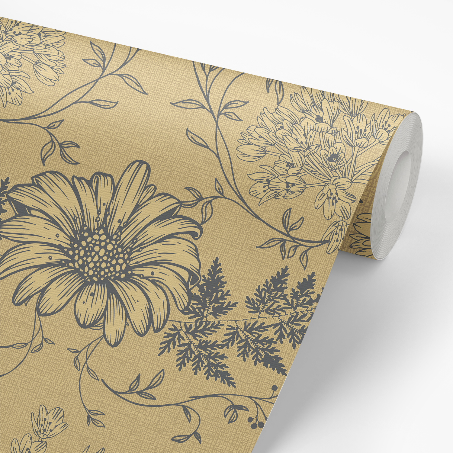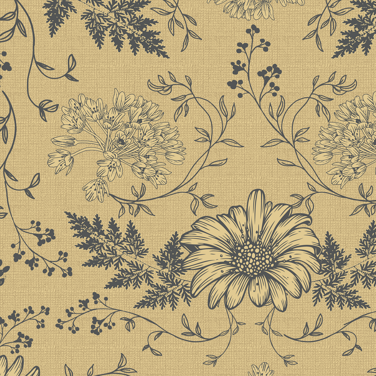 Toile Flowers Wallpaper - Gold